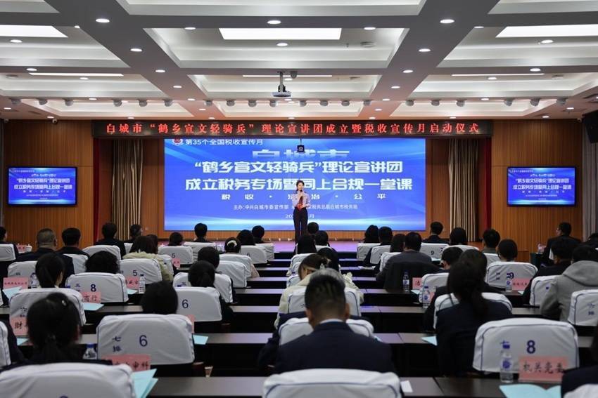 白城市举办“鹤乡宣文轻骑兵”宣讲团以“合规守正 行稳致远”为主题开展首场宣讲,市局主要负责人为9家入选总局税企直联范围的企业颁发荣誉证书。