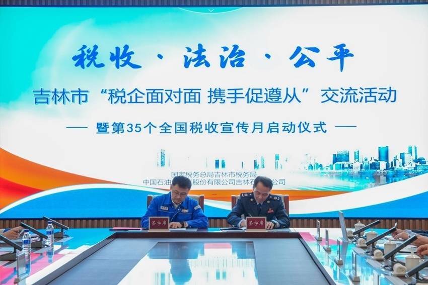 国家税务总局吉林市税务局走进中国石油吉林石化公司,与企业负责人、财务人员开展“税企面对面 携手促遵从”交流活动,现场与企业共同签订《共同打造税收合规遵从示范单位倡议书》。